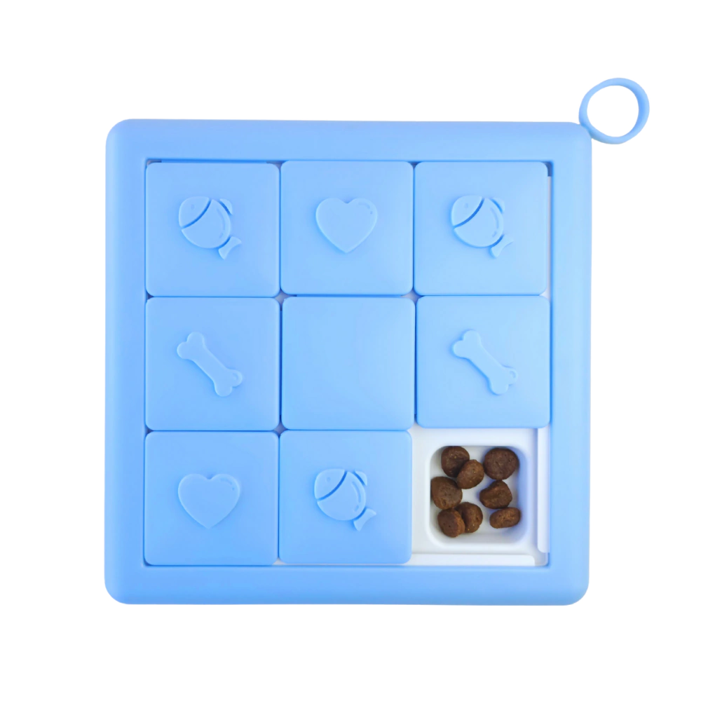 O tabuleiro interativo Puzzle é um brinquedo que estimula o instinto natural de busca: basta esconder petiscos nos compartimentos do tabuleiro e deixar seu pet descobrir como deslizar as peças até encontrar todas as recompensas.